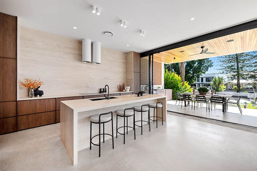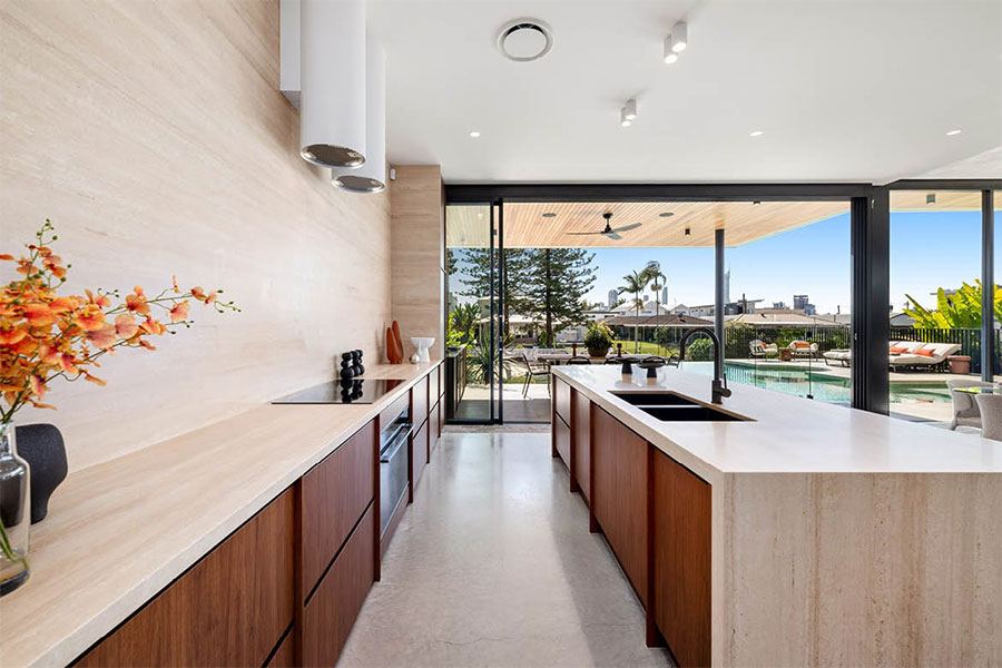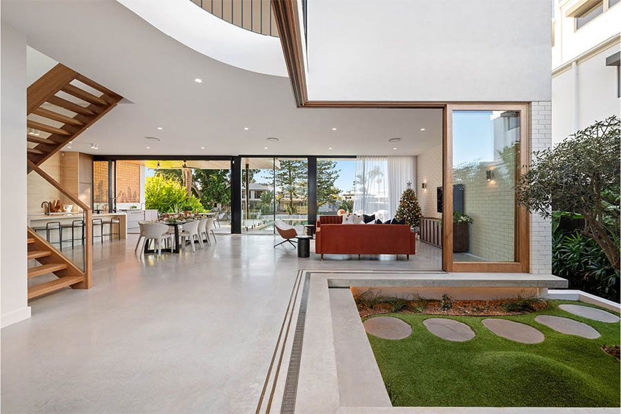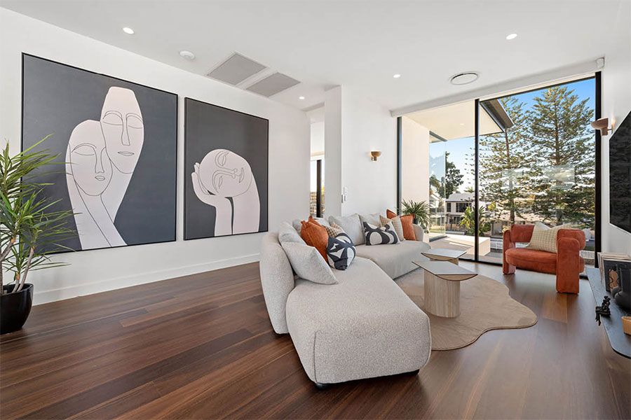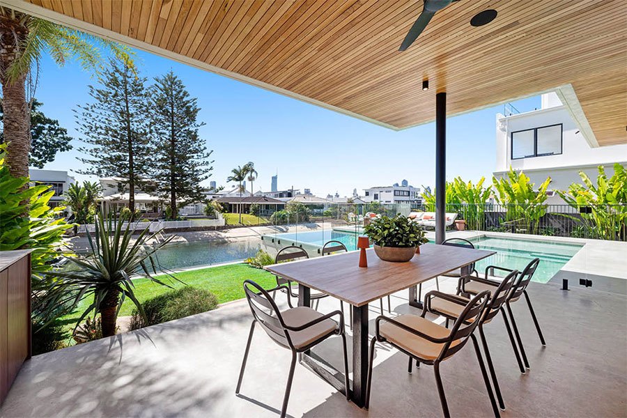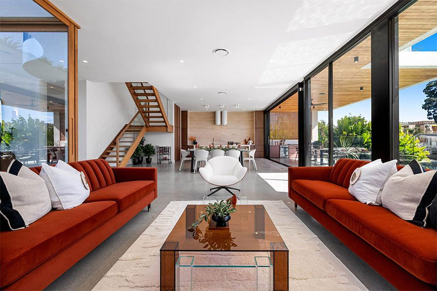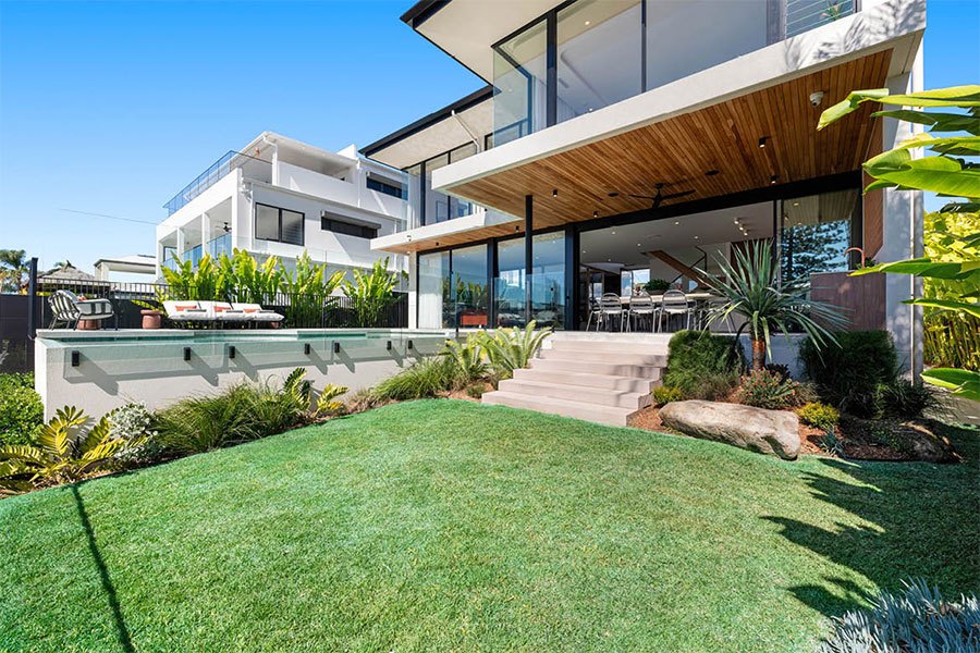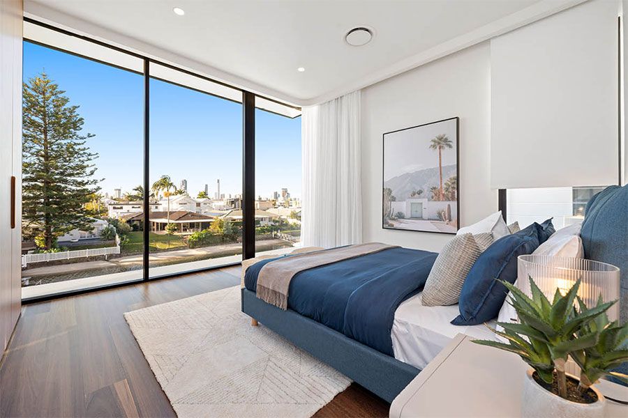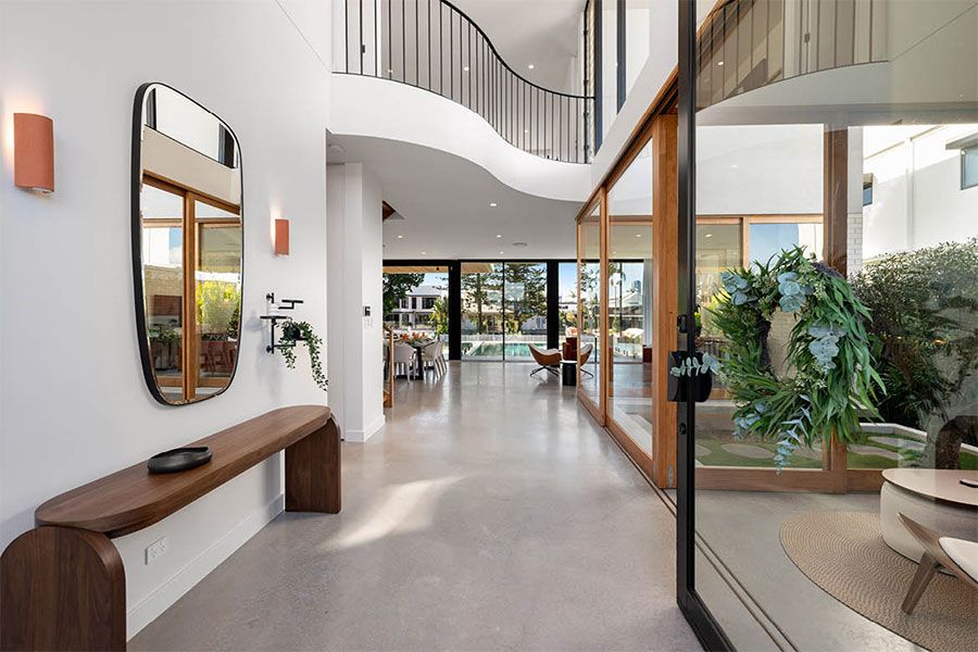 At the heart of it all is a stunning Broadbeach Waters home where modern coastal design meets relaxed luxury. Think sun-filled living spaces with floor-to-ceiling glass, uninterrupted skyline and water views, and a private sandy beach out the back.