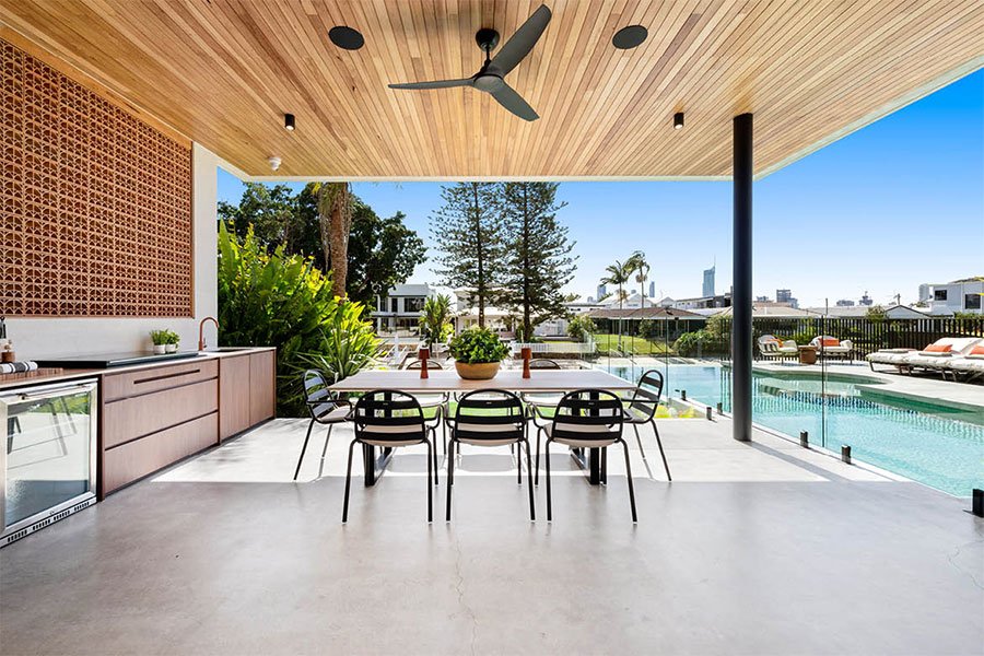 - An outdoor kitchen complete with built-in BBQ, sink, bar fridge and beer tap for effortless entertaining