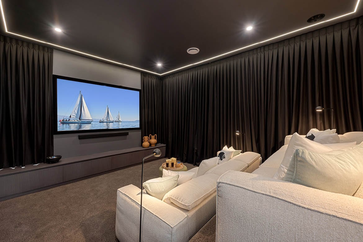 Certain rooms elevate the house from comfortable to distinctive. A sunken cinema room provides a dedicated area for entertainment that doesn’t intrude on everyday living spaces.