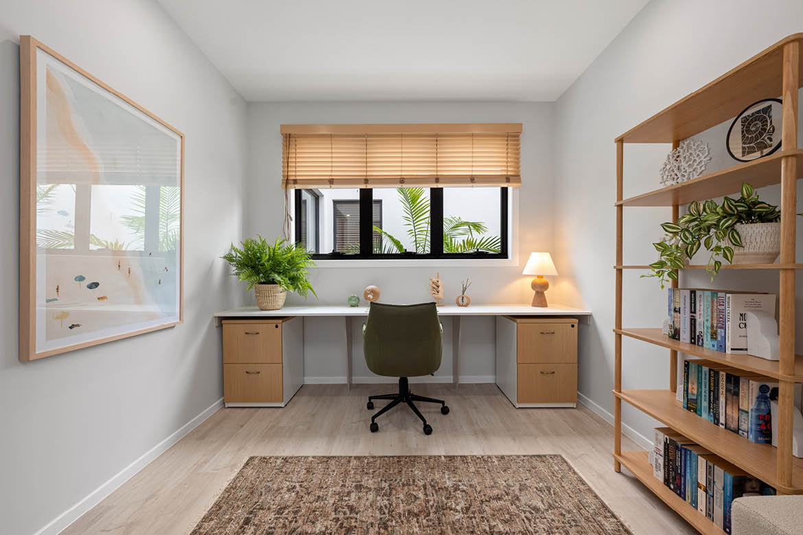 A separate study creates a quiet environment for work or focused tasks, positioned away from the main activity zones. This separation is subtle but effective, particularly in a home where social use is encouraged.