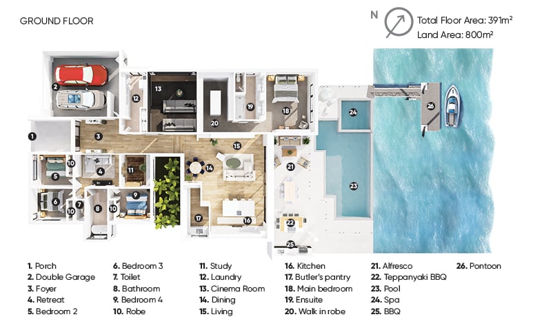 The defining strength of this prize home lies in balance. It delivers waterfront living without sacrificing practicality, and it offers generous spaces without tipping into excess.
