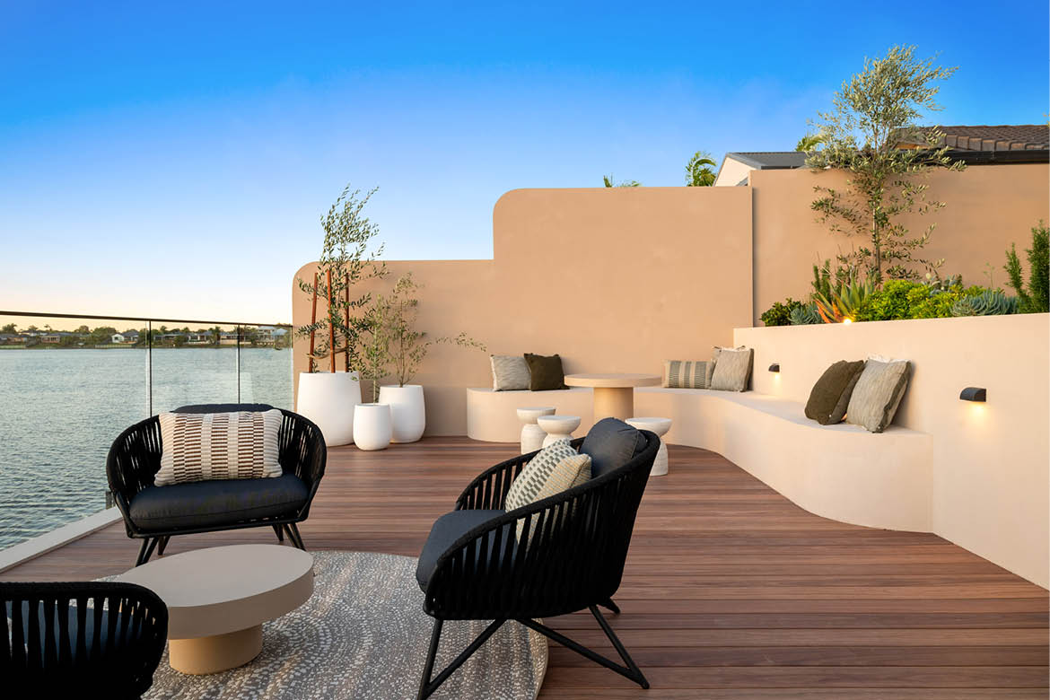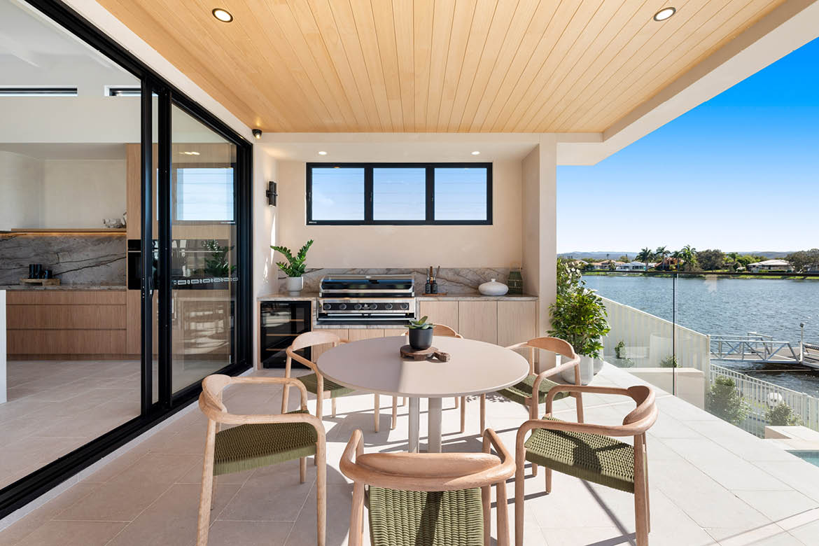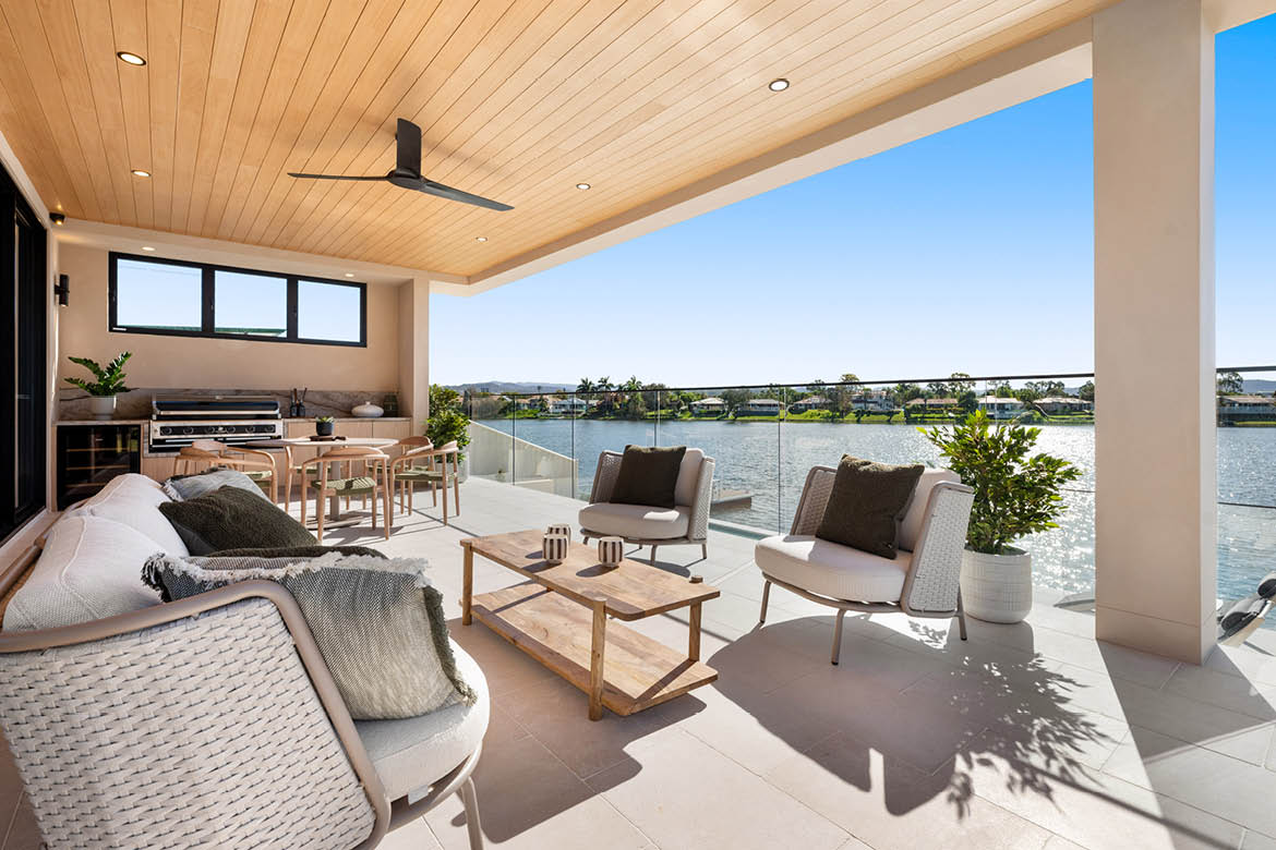 In waterfront homes like this, outdoor zones often become the most frequently used parts of the property. The design reflects this by positioning seating and gathering areas where the outlook and breezes can be enjoyed comfortably.