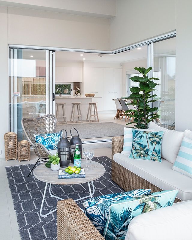 The décor of the home can best be described as casual-chic with lots of rattan, timbered accent pieces, cushions and area rugs. The dominant white motif is softened with muted greys, teal and deep marine-blue touches. It all adds up to a home that has a wonderful central area for entertaining, plenty of outdoor living space, and well-proportioned bedrooms that will make your family and guests feel right at home.